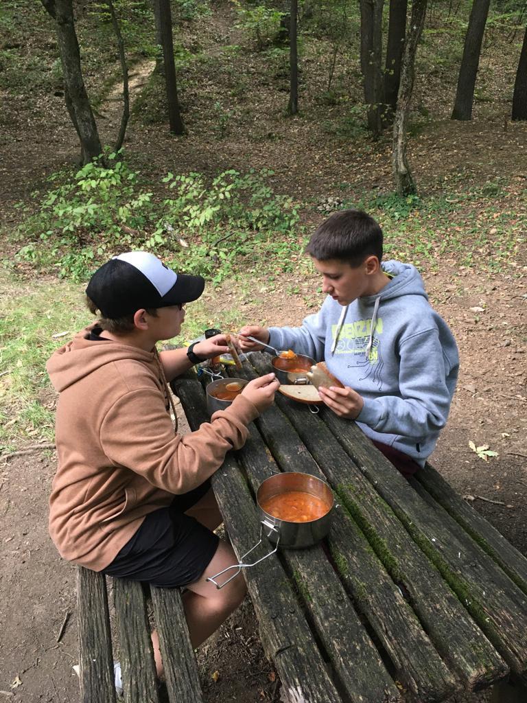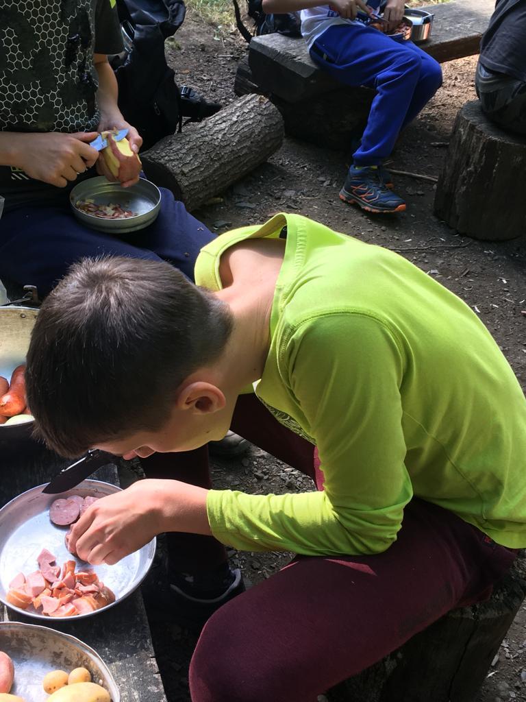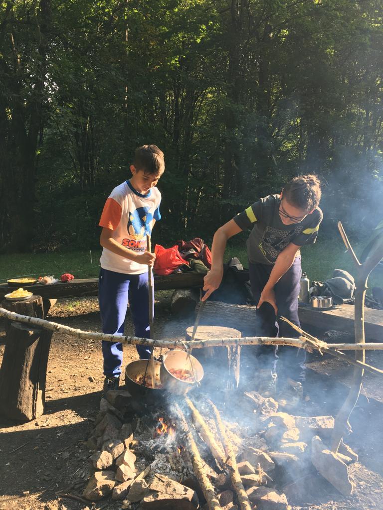Měly jsme cíl, dostat se na Modrou vodu. Po cestě přes zámek Nový Světlov jsme hledaly kešky, našli jsme 2 ze 4 kešek. Po dostavení na místo, jsme se vydali na prozkoumání špinavého lomu. Poté jsme šli rozdělat oheň a Já s Vendou a Vojtou jsme šli k místnímu pramenu s doměnkou dopustit si vodu, ale když jsme k pramenu došli tak pramen byl vyschlý, tak Venda vzala svojí filtrační láhev a napustila zbytek vody a vyfiltrovala ji. Ze získané vody jsme začali vařit společný guláš a po chvíli přišel Libor s Marianou a Dominikou, kteří donesli i vodu. Po jídle jsme (Já,Mariana,Vojta, Dominika, Tadeáš a Venda) šli dopustit vodu do dědiny s názvem Komňa a po cestě jsme našli 2 kešky a Venda s Marianou a Dominikou se stratily. Nakonec jsme se našli, vodu jsme dopustily a cestou zpátky do tábora se začalo stmívat. Když už byla tma tak jsme si začali opékat špekáčky a začali zpívat po nějaké době jsme šli spát.